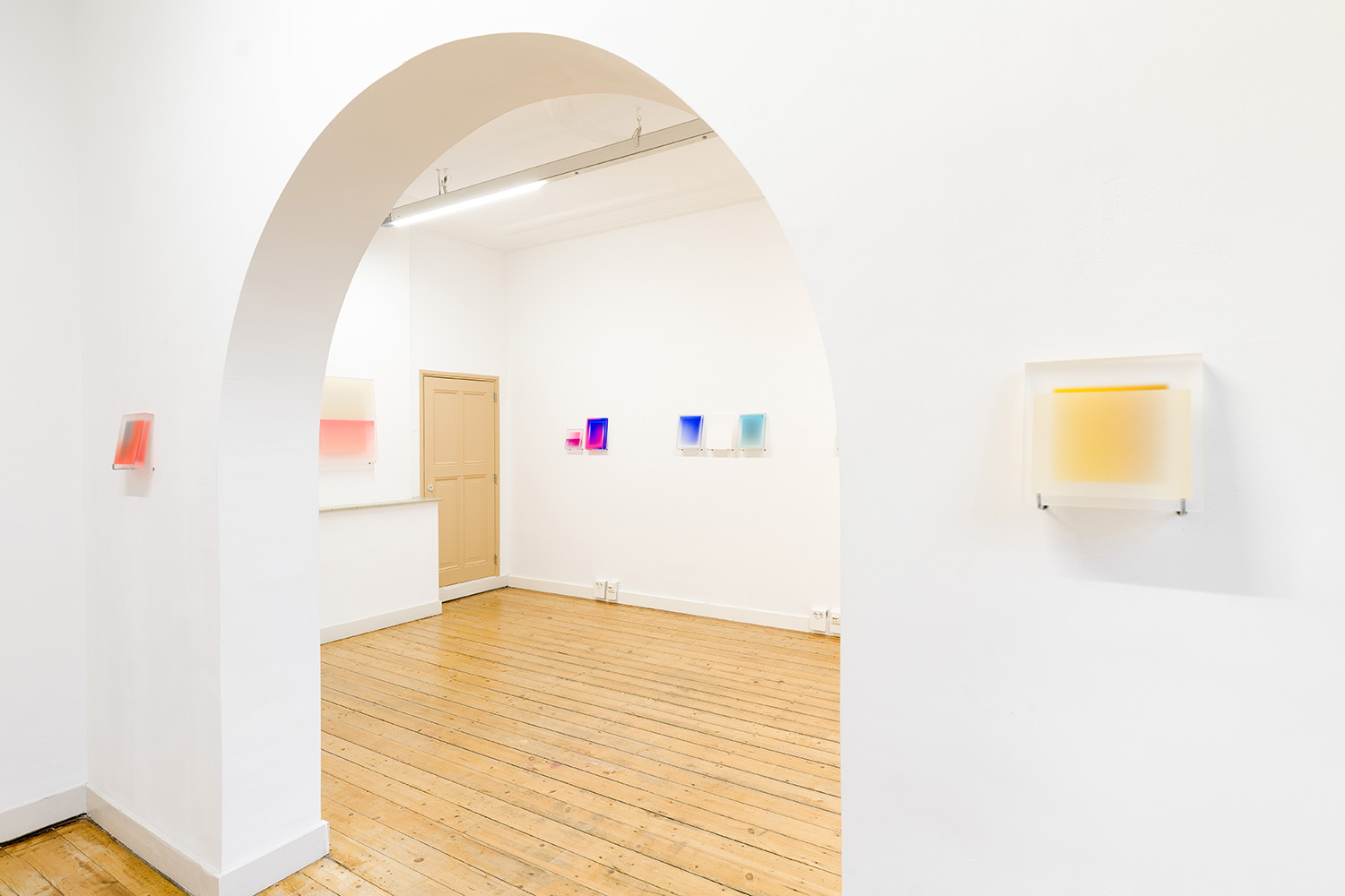 De gelaagde composities op transparant acrylaat tonen de spanning tussen grafische precisie en organische vervaging. Het zijn experimenten met geometrische vormen, kleurverlopen, zachte texturen, licht en ruimte. Het abstracte en minimalistische werk is zowel tweedimensionaal als driedimensionaal en creëert zo een nieuw spectrum. De felgekleurde, intrigerende objecten zweven tussen beeld en oppervlak.